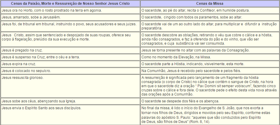 Repito: A Missa Inteira é Sacrifício e não somente na hora da consagração. Vejam agora, alguns simbolismos da Missa que nos remete diretamente ao Sacrifício do Calvário, acompanhem [4]: